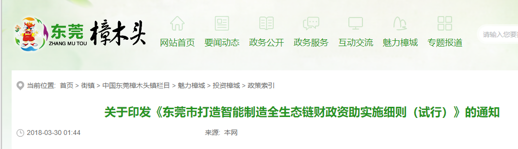 《東莞市打造智能制造全生態(tài)鏈財政資助實施細則(試行)》正式印發(fā)。對購買先進設(shè)備自動化改造的企業(yè),資助標準提高至設(shè)備投入額的25%到50%以上,單個項目最高資助500萬元。